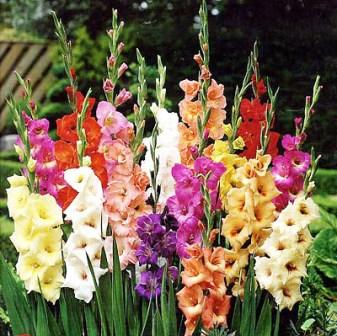 Во второй половине лета распускаются прекрасные георгины различной окраски и формы и удивительно нарядные гладиолусы.