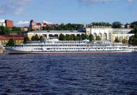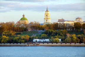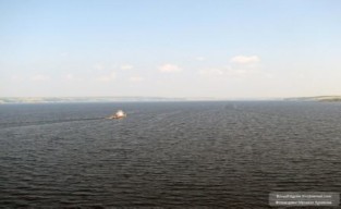 Выше плотины разлилось большое Камское водохранилище.