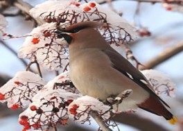 С севера прилетают зимовать снегири, чечетки, свиристели.